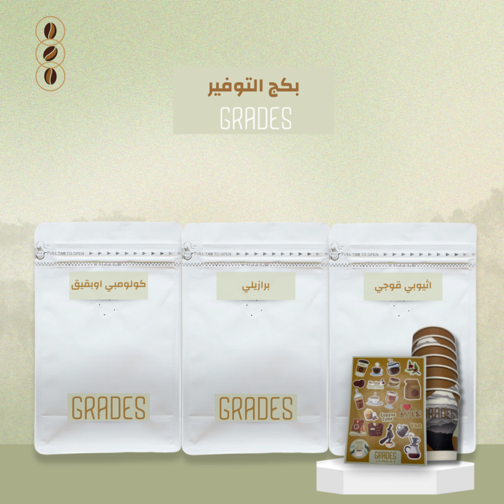 بكج التوفير الفاخر من قريدزبن اثيوبي قوجي 250 جرامبن برازيلي 250 جرامبن كولومبي اوبقيق 250 جراماكواب ورقية بشعارر قريدزاستيكرات قريدز